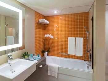 С Ибиса нас направили в Новотель. В Новотеле на ресепшен нас не захотели размещать на одну ночь и предложили пройти дальше по улице. Мы в холле на букинге забронировали номер, им пришлось нас разместить. После выдачи ключей нам не объяснили как подняться в номера, у них несколько лифтов. В полулюксах для горячей воды стоит бойлер, который нужно включить, чтобы была вода в душе. В номере было очень холодно, кондиционер был не исправен (вызванный инженер не смог устранить неполадку) он его отключил, но все равно холодный воздух поддувал. Было поздно и ребенок хотел спать, номер менять не стали