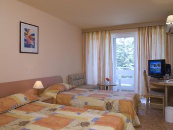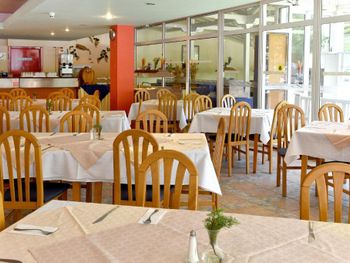 Guests can enjoy various meals in the property restaurant, as well as Bulgarian theme evening menus and special barbecues. A snack bar next to the pool offers salads, fruits and pizza. Soft and alcoholic beverages are available at the lobby bar and ice cream.