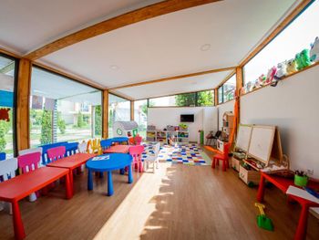 On-site entertainment and sports facilities include a restaurant, a bar, a golf course, a tennis court and a mini-market are available. A kids club is available at a surcharge. A beauty salon with massages, hairdresser, manicure, pedicure and steam bath is available at a surcharge.