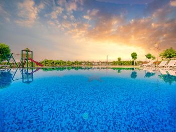 Очень зеленая и ухоженная территория, 6 бассейнов. Все в отличном состоянии. Вообще управление комплексом организовано отлично. Нет проблем с парковкой. Удобные кровати. И хорошо, что комплекс находится на удалении от центра города - вечерами тут тихо, прохладно и пахнет травами с окрестных полей.