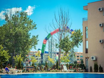 Прекрасная территория, много зелени и цветов. Несколько бассейнов - есть мелкие для детей, есть с горками, есть просто большие для плавания.