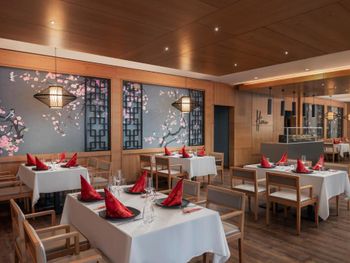 У розпорядженні гостей перебуватиме 2 відкриті та 1 критий басейни для дорослих і дітей. Щоранку в готелі сервірують сніданок "шведський стіл", після якого гості можуть відпочити на шезлонгах біля басейну. У готельних ресторанах з обслуговуванням по меню подають страви китайської, турецької і середземноморської кухонь. Закуски та морозиво можна замовити в головному ресторані. На території готелю також є 2 тенісних корти, 6 футбольних полів, більярдний стіл і столик для пінг-понгу.