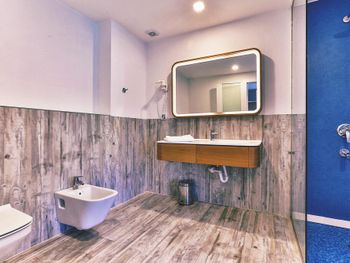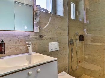 · в санузле нет душевого шланга, только кран и лейка, закреплённая под потолком, так что смывать с себя морскую соль не вполне удобно;