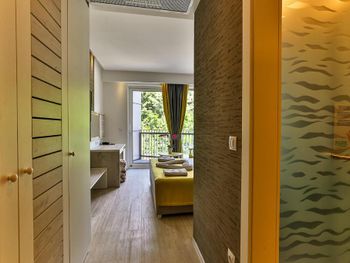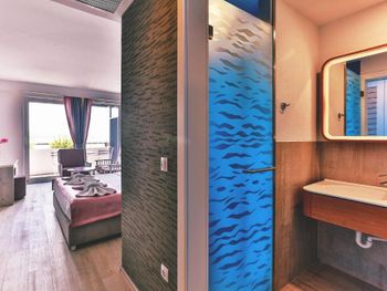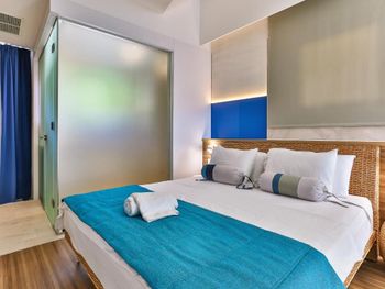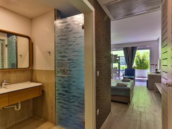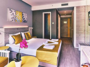 · небольшие, но уютные номера с современным дизайном и новой мебелью, гостям предоставляются халаты, тапочки, средства гигиены, а также (за безналичный депозит 20€ каждое) пляжные полотенца;