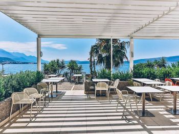 Завтрак обильный и сытный.Месторасположение отличное до моря 50 метров,лежаки и зонтики ,даже если у вас не все включено 8 евро на день,что вполне дешево.Вода в баре бесплатно и сколько хочешь. Пляж галька,но для детей очень удобно