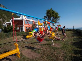 Один из немногих отелей для отдыха с детьми которые выдавал booking за приемлемые деньги, с ценой около 100€, остальные были дороже. Понравились горки, понравилось море, понравился номер в отеле.
