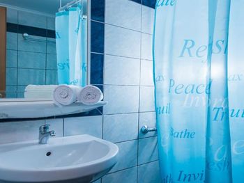 Ужасная ванная комната,когда сидишь на унитазе, ноги нужно ставить в душевой поддон. После принятия душа, воды немеренно, она просто не уходит, видимо забит сток. Весь отель воняет хлоркой, всё старое, ,никому не рекомендую и сама больше никогда туда.