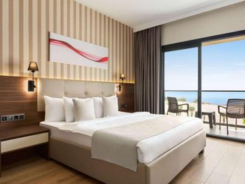 Очень приветливый персонал. По запросу бесплатно предоставили дополнительно воду для питья. С окна виден греческий остров. Есть парковка на территории отеля.