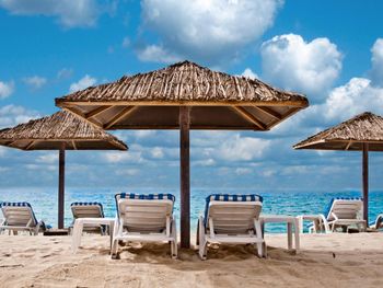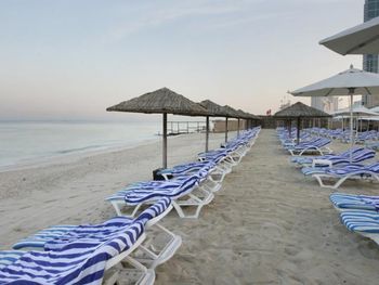 На пляже очень много лежаков , никогда не было проблем ( при три что приезжают люди с трёх отелей )
