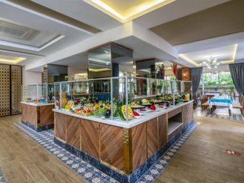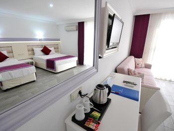 Замечательный отель, спокойный, без навязчивого сервиса и анимации. Немного уставшие номера, но ежедневная уборка, чистота. Очень вкусное питание. Близость к морю -огромный + , возможность плавать в любую погоду и целый день))). Из минусов -- пляжные зонтики-- падают и устанавливать самим( в основном). Места или свободный лежак всегда можно найти. ... И не хватает настоящего турецкого Кофе!!!