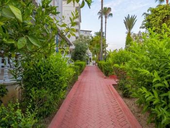 Чуть выше отеля, если перейти дорогу, есть много магазинчиков, обмен валют и аптека. Там же есть остановка, где проезжает автобус на Аланию.