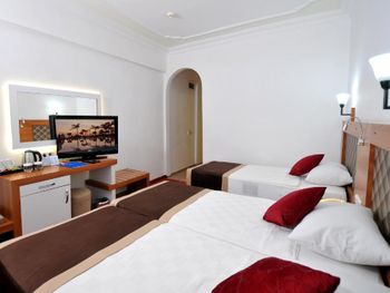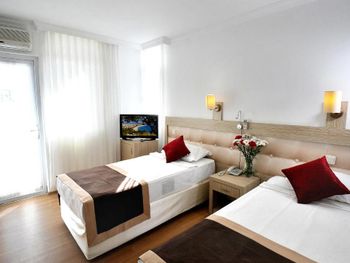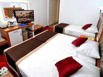 Никогда не думал, что придётся когда-то написать такой отзыв об отеле. Но, к сожалению, он того заслуживает. Это худший отель, что я видел в своей жизни. Я не знаю, кто присвоил ему 4 звезды, потому как он не дотягивает и до одной. Неприятности начались с заселения. Я бронировал номер с одной кроватью для нас с женой. Во время заселения нам сказали, что таких номеров нет в наличии сейчас, но на следующий день нам смогут его предоставить. На следующий день мы пошли смотреть этот номер. Это был абсолютно такой же номер с двумя кроватями, но придвинутыми друг к другу. Мы не стали в него переселяться, так как он был прокурен сильнее, чем наш. Стаканы в баре, видимо, не моют вообще, просто полоскают, так как на каждом втором можно было обнаружить следы помады. По столовой разгуливают огромные тараканы длиной в две фаланги пальца. Один раз моя жена подошла к отделу с хлебом, и такой таракан сидел на блюдцах, стоящих рядом. К сожалению, сфотографировать его не успел, так как крики женщин и детей от увиденного вызвали суматоху. Отдельного внимания заслуживает состояние номеров. Разбухшие от воды дверные косяки и мебель, на стенах - следы раздавленных комаров, потрескавшаяся штукатурка, жёсткие матрасы, подушки бугристые от слежавшегося комьями наполнителя. В ванной комнате потолок отделан пластиковыми панелями, на которых имелись следы плесени и просто отпечатки чьих-то грязных пальцев. Пластиковый корпус фена для сушки волос деформирован от температуры. Холодильник еле охлаждает. Кондиционер работает с таким гулом, будто вот-вот издохнет. Железные ступени пожарной лестницы прогнили настолько, что сквозь дыры можно видеть, что происходит внизу. Перечислять можно долго. В этом отеле изношено абсолютно всё. Касаемо пляжа. Шезлонгов никогда не хватает на всех желающих. Постояльцы занимают их на рассвете. Пляжный песок содержит в своём составе немалую долю окурков.