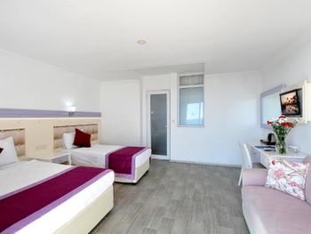 отдыхали семьей, сняли 2 соседних номера (спасибо ресепшн). расположение супер! море буквально в 2-х шагах, через дорогу огромный базар. Но вы должны понимать, что за такую цену шикарный отель с просторными номерами получить нереально! это бюджетный отель со всем необходимым: маленький холл, очень маленький бассейн, маленькая столовая на -1 этаже (рестораном никак не назвать), маленькие номера, протекающие краны в маленьком санузле и т.д. (уборка каждый день)
