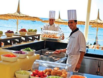 Персонал на ресепшене , быстро заселяют только итальянцев. Гест релейшн вообще оч странная женщина . Отвечает сухо с недовольным лицом . Говорит по русски, но прикидывается а ля дипломат. Дама в образе) . Все рестораны а ля карт платные. Питание однообразное. Вот прям серьезно каждый день одно и то же. Фрукты дают самые дешевые. Аниматоры скучные, все говорят на итальянском. И одни и те же танцы под одинаковую музыку каждый день. Активно аниматоры только ищут гостей для того, чтоб повести их на дискотеку за деньги. Отель своих денег не стоит однозначно. Риф не самый красивый в Шарме ) может когда был, но сейчас он серый и не яркий. Из за большего количества людей , он умер.