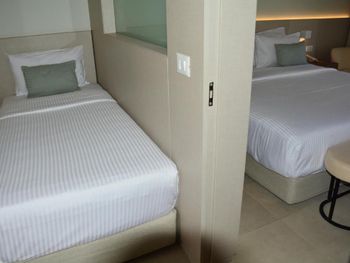 Indira сразу предложила совместить кровати - что в итоге оказалось хорошей идеей. В принципе работники отеля это быстро решили - на 1 день отдыха предложили другой номер (не понравился) , на второй день так же показали второй номер ( не понравился) . В итоге мы остались в номере который нам дали изначально(из за лучшего расположения ).