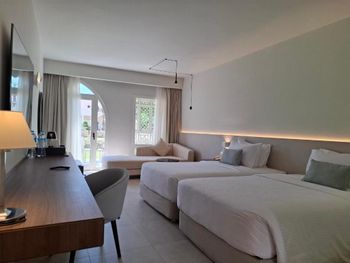 Отличный отель, всем рекомендую! Мне очень понравился абсолютно всем: большая красивая зеленая территория, пальмы, цветы, красивые просторные уютные номера, светлые в восточном стиле, с красивыми ажурными лампами! На территории много разных бассейнов и бассейн с горками, возле всех бассейнов есть бар с напитками для детей и взрослых, лежаки полотенца, зонтики. Всего хватает, всегда есть свободные места. Персонал прекрасный, приветливый и услужливый, все улыбаются, атмосфера очень приятная. По вечерам проходят разные шоу программы, концерты, представления. Красивые здания ресепшен, ресторанов, везде чисто и красиво. Питание на мой взгляд просто восхитительное: разнообразие огромное, всего много и все вкусное. Есть теннисный корт, нам понравился. Организация тоже отличная, четко встретили в аэропорту быстро всех собрали и доставили в отель, поселили за пару минут, быстро все объяснили, выдали и провели до номера. Интернет тоже быстрый работает хорошо. У отеля есть Свой выход к морю и риф. Пляж песок. Спасибо огромное отелю за чудесный отдых!