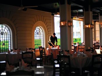 Здание рецепшена и столовой можно освежить , так же как и скатерти .