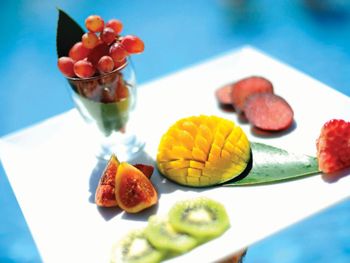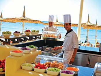 Питание тоже на высоте, на любой вкус. Утром свежевыжатый апельсиновый сок. Вкусный кофе на всей территории. По вечерам - мороженое и клубника. Разнообразие овощей и фруктов, а также выпечки и десертов. Отдельное меню для самых маленьких: отварное мяско, овощи, пюре и т.п. Никаких проблем с пищеварением не возникало.
