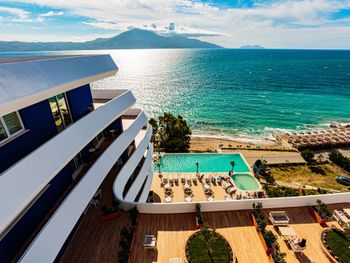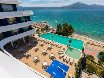 У помешканні Regina Blu, яке розташовано в місті Вльора, за кілька кроків від пам'ятки "Пляж Радгімьо", пропонують номери для алергіків. Тут до послуг гостей послуги консьєржа, сезонний відкритий басейн, безкоштовний Wi-Fi та приватна пляжна зона. У помешканні працює ресторан. Також до послуг гостей спільний лаунж та тераса. Для зручності гостей обслуговування номерів, цілодобова стійка реєстрації та пункт обміну валют.