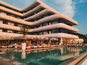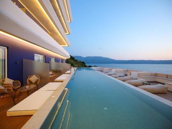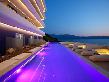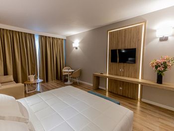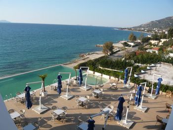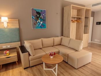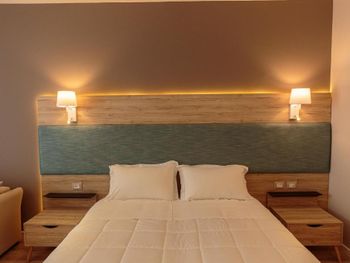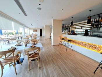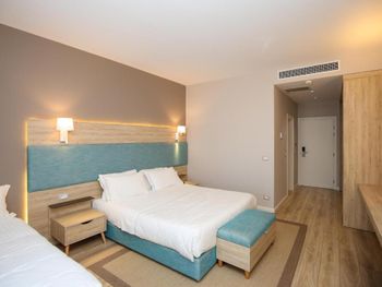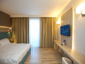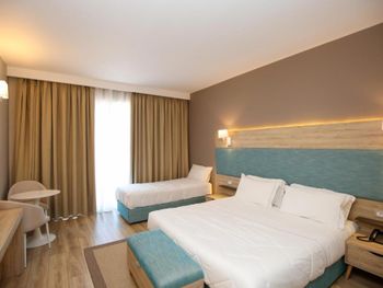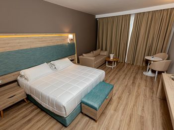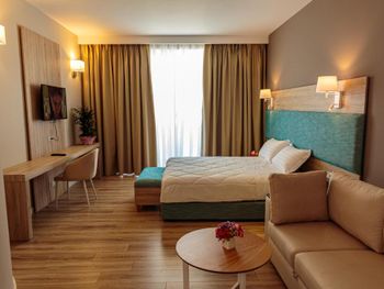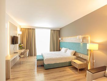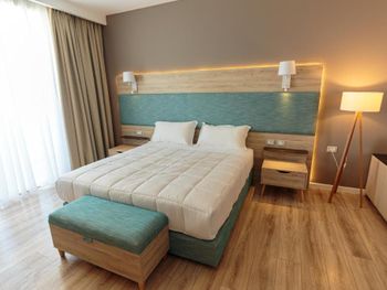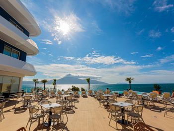 Ужин с шведским столом стоит 25 евро на человека. За эти деньги предлагается совершенно скудный выбор еды. Персонал в ресторане отеля не справляется. Иногда приходилось прождать 20 минут пока принесут меню. Вода в бассейнах была ледяная, а на пляже была галька вместо песка, помимо этого с достаточно большим количеством мусора. В отеле нет банкомата и ближайший рабочий находится в соседнем городе в 20 минутах на машине от отеля. Учитывая что помимо отеля вокруг особо ничего нет где можно было бы заплатить картой, это большая проблема.
