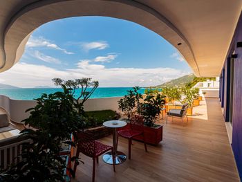 Очень красивый отель, потрясающая терраса и вид на море. Интерьер - просто сказка