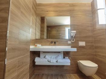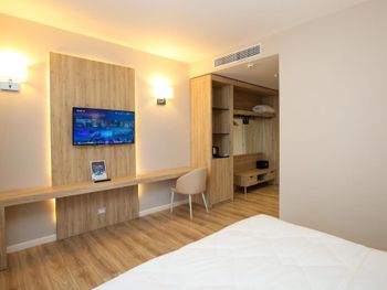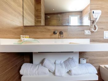 When we arrived at the room, the sink was leaking. Instead of changing the room, we had to wait for the plumber, and then wait for him to fix the sink. The cleaning lady didn\'t come after that. There were no towels in the room at check-in. After the call to the reception, they brought us 2 large towels and that\'s it. When I called and asked to bring towels for my face and feet, they just didn\'t come. They were brought the next day, as they simply did not have clean towels, they were in the laundry. There is no iron in the hotel. No spa. There is no dry cleaning or laundry service either. The breakfasts are tasteless.