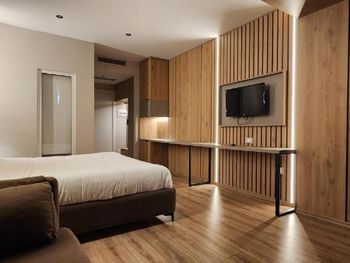 При заезде в номер у нас текла раковина. Вместо того, чтобы поменять номер, нам пришлось ждать сантехника, а потом ждать, когда он починит раковину. Уборщица после этого не пришла. При заезде в номере не было полотенец. После звонка на ресепшн нам принесли 2 больших полотенца и всё. Когда я позвонила и попросила принести полотенца для лица и ног, то их просто не принесли. Принесли их на следующий день, так как полотенец чистых у них просто не было, они были в стирке. Утюга в отеле нет. Вообще. Спа нет. Химчистки и прачечной тоже нет. Завтраки не вкусные.