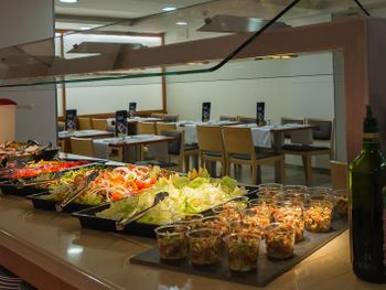 У готельному ресторані гостям пропонують сніданок "шведський стіл" та вибір страв середземноморської кухні.