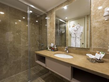 в номере запах химии после уборки, вещи не складывают , много нетрезвых людей . В спа ходят с грудными детьми, крики и вопли под массаж. Сауна набита битком. Из соседнего отеля приехала сестра с ребёнком на 2 часа, турецкая Охрана в Риксосе забрала у неё загранпаспорт на все время пребывания в отеле, взамен ни дав даже расписку , переговоры с менеджером , что это нарушение наших прав успеха не дали, охранник хамил ( переводил таксист) или убирайтесь вон или давайте паспорт. Вот такое отношение к гостям из России. При выезде опять выставили счёт за уже оплаченный трансфер, разговаривают по хамски . Я не советую адекватным людям эту страну и этот Отель.