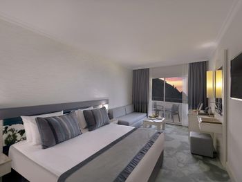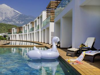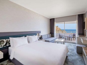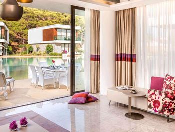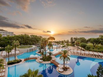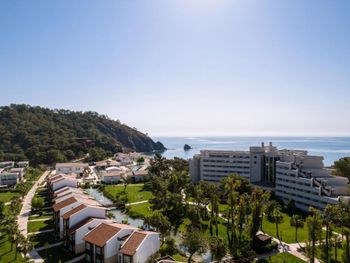Огромная территория в очень живописном месте с видом на гору Тахталы. Сервис и удобства в отеле на очень высоком уровне. Вкуснейшая кухня в ресторанах и снек барах. Хороший kids club и водные развлечения. Отдельное спасибо персоналу, который был на связи 24/7 и все вопросы оперативно решались.