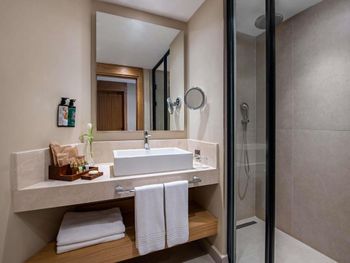 Отравили на завтраке платном в номер, в день выезда, поэтому мы немного задержались и с нас взяли ещё штраф, за поздний выезд. Такой наглости и обмана мы нигде не встречали!!! Не верьте там никому, врут все! Заказали фреш апельсиновый, принесли разбавленный с порошком и утверждают, что он настоящий, даже менеджер. Кофе тоже порошковый! Еда вся невкусная! Пришли к выводу что они нас ненавидят, но и мы к ним больше не поедем, а если вы собираетесь, то настройтесь на то что вас будут обманывать всюду на качество и деньги! Будьте осторожны! Все очень дорого , дороже чем в Европе и выглядит смешно, как дорогущая Деревня, и это ещё без преувеличения!