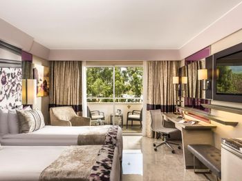 Заявленный, при бронировании номера с 30.10 по 08.11.18, кондиционер не работал. Жара в номере с 11 до 24 час была 27 Гр.С. Окна открыть нельзя сильный шум от дискотек. На просьбу в рецепшен поменять номер, получили истерику от сотрудника отеля, что мы сами создаем себе проблемы и он ничего делать не будет. Пришлось обращаться к руководству. Такое отношение персонала к своим проживающим, при стандартной цене номера 420 дол/сут, непонятна. Но смена номера большого облегчения не принесла, т.к. шум от дискотек был до поздней ночи. В номере на 2 этаже, где жила семья моего сына, в первую ночь, внучку искусали комары. Никаких средств в номере от них не предусмотрено. Во время нашего прибывания, отель работал последнею неделю, до 08.11.18. и многие развлечения (рестораны, детские клубы для детей, итд) в отеле уже не работали. Температура воды в аквапарке была 15-17 Гр.С.