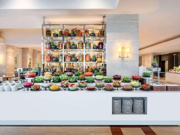 В рестораны аля карт не пробиться, мы при заезде попытались хоть что-то забронировать, однако за 6 дней нашего проживания забронировать так ничего не удалось. То есть по-сути имеется в доступе только 1 ресторан шведский стол, который больше напоминает столовую, еда среднего качества, можно найти что-то для себя, но несколько раз кофе на завтрак принесли растворимый.