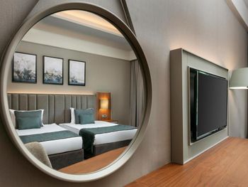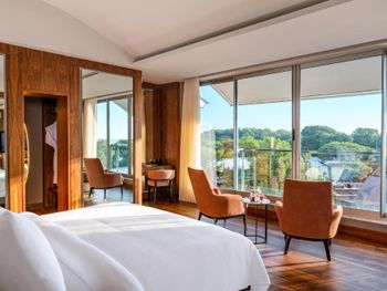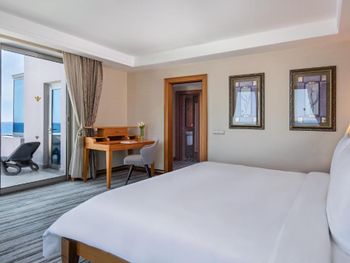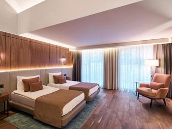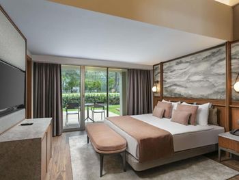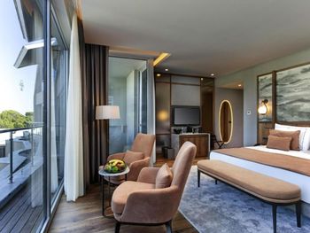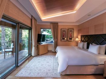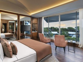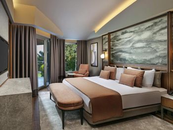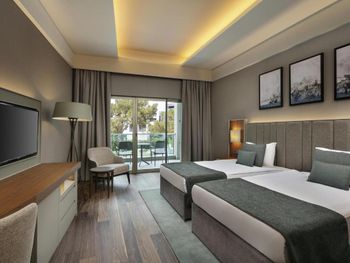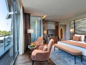 Цей великий курортний готель розташований на території площею 250 000 кв. м на узбережжі затоки Анталії. До послуг гостей пляж протяжністю 720 метрів, спа-центр, аквапарк та елегантні номери з балконом.
