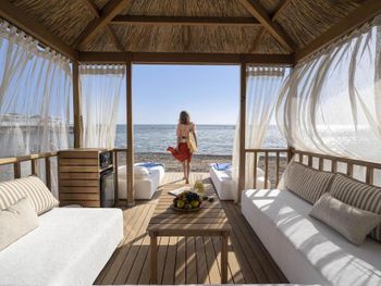 Про допродажу услуг — на берегу моря есть уютные диванчики, так вот, они платные даже для постояльцев отела. Стоит (внимание) по 100 евро человека и конечно стоят пустые.