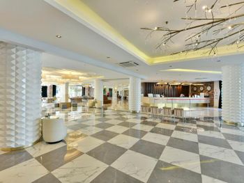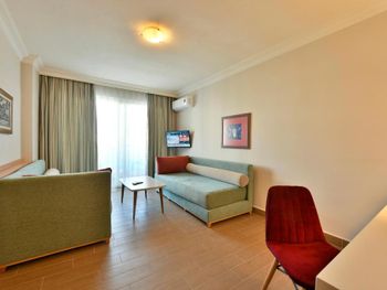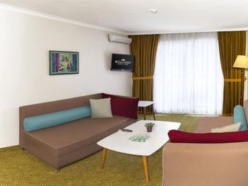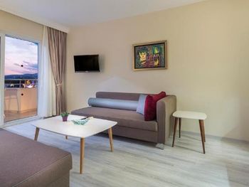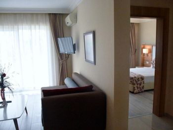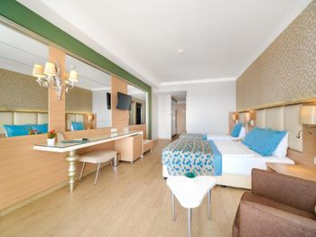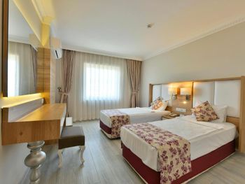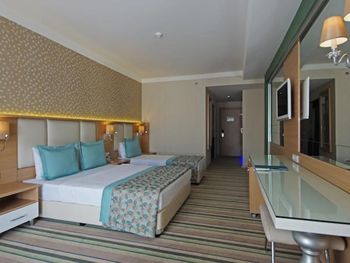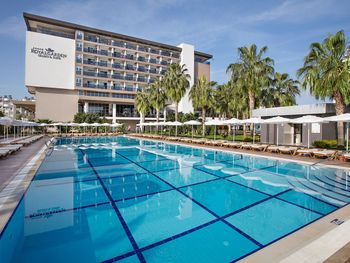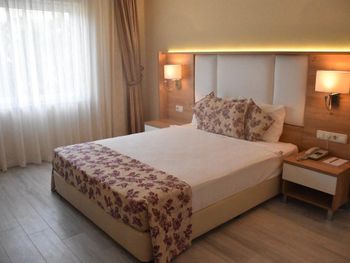 Читала отзывы о данном отеле на всех сайтах, в итоге ни один плохой отзыв не подтвердился! Отель превзошел ожиания! Wi-fi на всей территории отеля, в том числе в номерах. Прекрасный большой песчано-галечный пляж. В отеле запрещено занимать лежаки. Жаль, что не все прислушиваются к этому правилу, но все же в любое время можно было найти свободный лежак и даже три рядом. Вкусная и разнообразная еда в ресторане. Если приходить в открытию ресторана, то могут быть очереди за едой, но если приходить чуть позже, то очередей нет. Официанты быстро убирают столы, меняют скатерти при необходимости, раскладывают приборы, даже приносят напитки. Доп услуги в отеле не навязывали. Пляжные полотенца мягкие, приятные. Широкий ассортимент алкогольных напитков. В отеле отдыхает много пенсионеров и это прекрасно: они не шумят и не доставляют неудобств. В баре готовят кофе по-турецки, очень жаль, что я узнала об этом перед отъездом. Персонал понимает ходовые фразы на русском, в основном говорят на английском. У нас был номер на 5 этаже, с видом на бассейн. С открытой балконной дверью очень шумно от дороги, но шумоизоляция очень хорошая - с закрытой дверью полная тишина. Отличные шторы блэкаут.