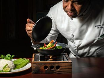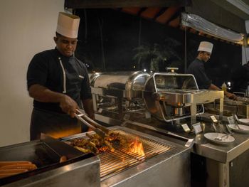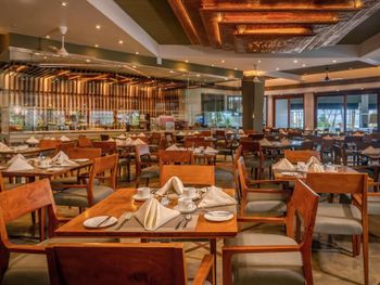 У головному ресторані з відкритою терасою і видом на пляж подають страви міжнародної та європейської кухні за системою "шведський стіл". До послуг гостей цілодобове кафе біля басейну і 2 бари.