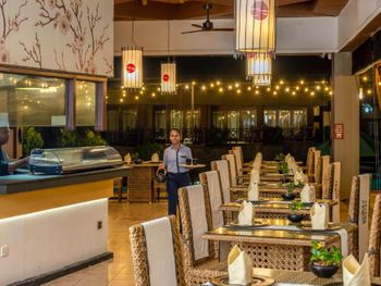 Персонал проявляет дружелюбие больше к тем, кто купил all inclusive. Мы отдыхали с друзьями, у которых были браслетики и явно заметили разницу. Еда в main restaurant (шведский стол) только на 20-30% оптимизирована под европейский вкус. даже местные спагетти с соусом наши дети есть отказывались, потому что они были острые. Как сказал мой ребенок, за полезную еду отелю можно поставить 1 балл, а за сладкую - 5 баллов. Мы покупали каждый обед и ужин в Шведском столе отдельно. На второй день поспорили с персоналом на тему того, что входит в стоимость. Нас сначала пытались убедить, что даже вода не входит и ее нужно покупать отдельно, но когда я потребовала предоставить перечень того что входит, оказалось что junk water входит. после нескольких уточнений оказалось, что junk water - это вода из под фильтра. Мы пару раз сходили в японский ресторан, там было довольно сьедобно, но детям опять пришлось заказывать просто варенные макароны. В последний день добрались до мексиканского ресторана и пожалели, что не добирались до него раньше. очень приличные бургеры, том ям, куриные нагетсы, более привычные для нас салаты.