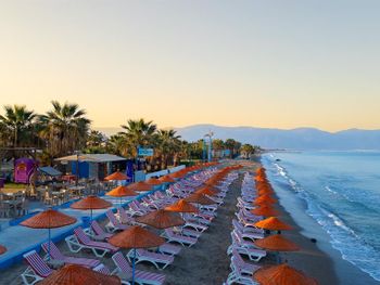 Шезлонги, зонтики, пляжные полотенца - бесплатно.
