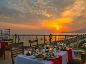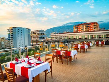 На 7 поверсі в головному ресторані можна скуштувати страви турецької та міжнародної кухні, а також помилуватися панорамним видом на море. У ресторані з обслуговуванням по меню можна замовити наїдки османської і середземноморської кухні. У барі біля басейну і в барі на пляжі подають прохолодні напої.