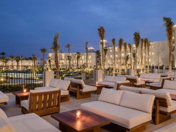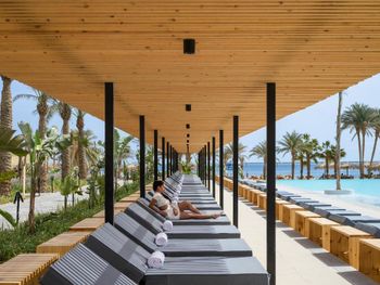 Великолепный отель в стиле минимализма , новый, изящный и чистый. Все сделано качественно и со вкусом! Расположение просто уникальное - 10 минут от аэропорта! Питание - выбор потрясающий! Вся еда готовится прямо на ваших глазах, нет никаких вчерашних блюд, все свежее и очень вкусное. Пляж отличный, лежаки мягкие , новые и очень удобные, полотенца выдаются прямо на пляже , всегда свежие и чистые , причем без всяких ограничений. И они белые ! Кристально белые, как сам отель ! Если у вас all inclusive , то вам постоянно будут предлагать напитки на пляже бесплатно : вкуснейшие смузи , кофе , коктейли , вода, вино. Причем принесут прямо к лежаку. Просто сказка! Такого нет нигде! Отдельного внимания стоит персонал !!! Это что-то! Великолепная команда ! Walid - отдельная благодарность ! Я не знаю, кто управляет отелем, но это очень профессиональный и талантливый человек, сумевший собрать и воодушевить огромную команду- это уникально и дорогого стоит! Хотите топ сервис - вам сюда! Каждый сотрудник где бы вы ни находились , в коридоре или ресторане, у бассейна или на пляже - каждый , подчеркиваю, каждый улыбается и предложит помощь , всегда искренне спросит что бы хотелось сейчас и принесет то, что вы попросите!!! Большая часть персонала с хорошим чувством юмора, веселые и симпатичные ребята. Хотите прямо море, вот чтобы утонуть в комфорте - сюда! Музыка в отеле фоновая - просто супер. Она с национальным акцентом, но ненавязчивая, очень приятно, никакой попсы. Этот отель - для людей с хорошим вкусом и чувством стиля, для тех кто хочет моря, тепла и высокого качества во всем . Утром на море штиль, после 17 штиль - днем ветер , теплый и приятный. Такой пляжный кондиционер :))) очень рекомендую !!!номера отличные, уборка чудесная. Один из номеров у нас был люкс с 2 комнатами и гостиной - так в каждой комнате огромный телевизор , а в мастер спальне сразу два , перед кроватью и перед ванной( если кому-то это надо:). Впечатления от поездки самые хорошие!!!