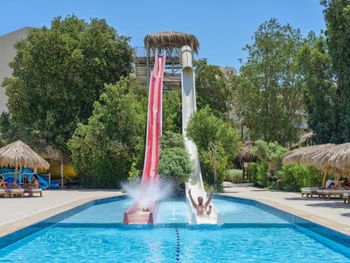 За территорией отеля магазины со всем необходимым для отдыха. Напротив отеля аквапарк, бары, интенсив и амфитеатр с вечерними программами: все это бесплатно для посетителей Serry, кто хочет попасть в стандартную атмосферу отдыха в Египте.