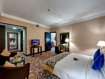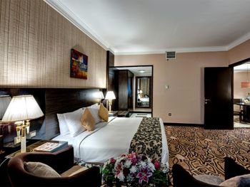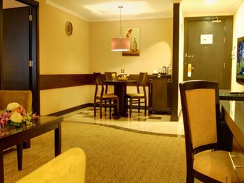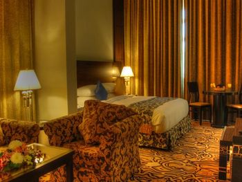 Цей розкішний 4-зірковий готель розташований на вулиці Аль Таавун, у районі Аль-Мамзар. До послуг гостей плавальний басейн на даху, сауна та повністю обладнаний тренажерний зал.