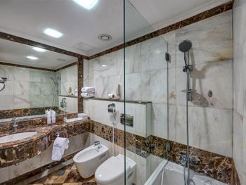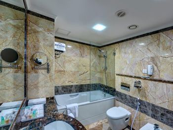 Просторі номери готелю Sharjah Palace обладнані телевізорами з плоским екраном та кондиціонерами. У кожному з них є окрема ванна кімната з феном.