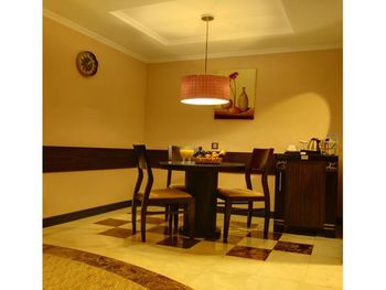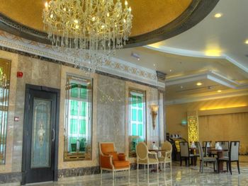 У ресторані готелю Sharjah Palace сервірують "шведський стіл", який складається з різноманітних страв європейської, китайської, арабської, індійської та далекосхідної кухонь, а також стейків та морепродуктів. У спокійної атмосфері лаунж-зони La Fontana гостям пропонують каву та інші гарячі напої.