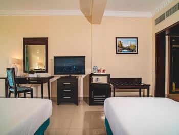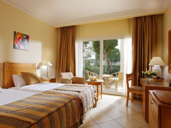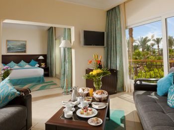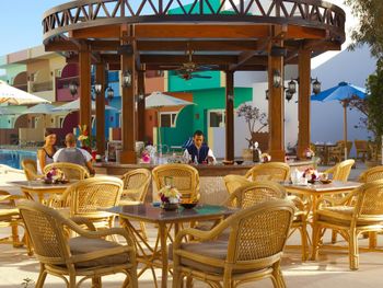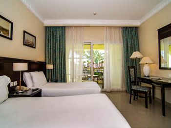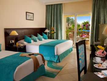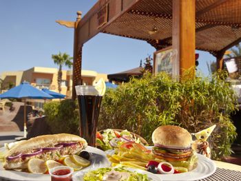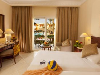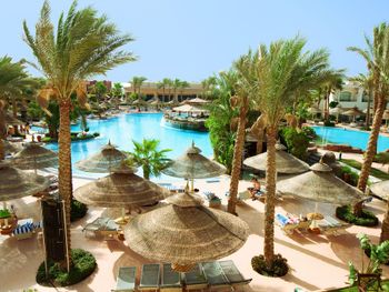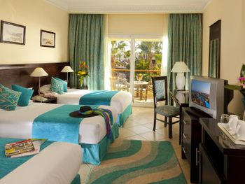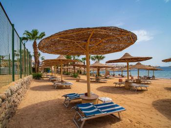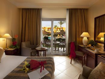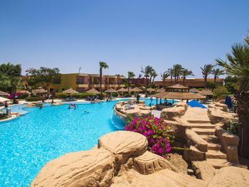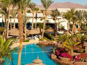 Встретили нас с сыном в аэропорту. Уже неплохо. Ехали 10мин. Номер был большой и убирали его хорошо. Постель удобная, вылазить не хотелось. Пляж нам показался довольно большим и чистым. Риф-малоинтересный, дальше по берегу в Хилтоне он с пещерами и туннелями. На 3й день рыбки уже надоели и мы просто плавали в этом прекрасном Красном море. Питание отличное, на любой вкус. Гриль на улице никогда, видно, не чистят, поэтому мясо всегда было обгорелое. Но и без гриля всего хватало. Понравилась красивая ухоженная территория. Анимация слабая, ребят-аниматоров видели, в-основном, на пляже и в ресторане. Но нас это не напрягало, даже наоборот-приехали на турниры и спокойно могли вечером заснуть. Нижний выход из отеля - прямо на Сохо. Вечером там хорошо прогуляться-десятки кафешек и магазинчиков типа "настоящий луивуитон только у меня, от 15$, но могу дать скидку только для вас", эстрада, музыка, танцы и песни. Целый театр металл. скульптур. Ну и 90% от все туристов и 100% всего персонала говорит по-русски.