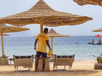 Сотрудники все очень приветливые, улыбаются, здороваются , помогают во всем!!! Приносят полотенца, переносят лежак куда вам нужно, приносят напитки к вашему зонтику (на пляже)