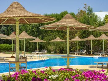 рядом с нашим корпусом был бассейн там даже присесть не разрешили , потому что мы с ребёнком , получается тот кто без детей пользуется всей территорией , а кто с детьми нет, а платят одинаково , до моря далеко и ещё идти в гору , но ездит трансфер , крошечный пляж , на несколько отелей ,толпы людей , лежаков нет , с территории savoy прогоняют , хотя говорили на ресепшн что это одна группа отелей , в баре наливают местное вино из коробок по 100 гр если просишь два стаканчика возмущаются