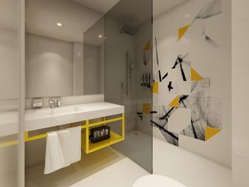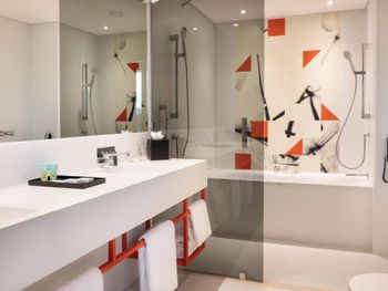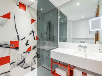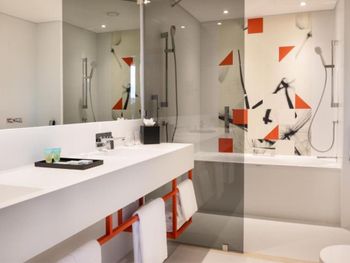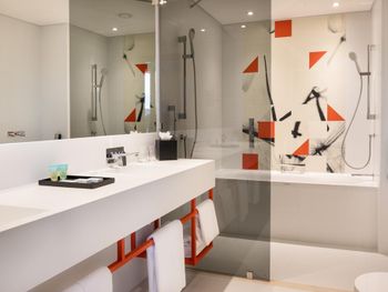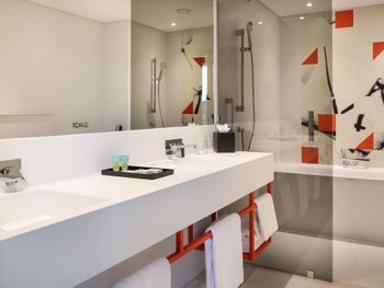 Холодный пол (хотелось бы тапочки хотя бы), немного странная конструкция душа (вода обязательно окажется на полу ванной), кондиционер работает очень сильно, пришлось выключить его полностью, потому что я боялась простудиться.