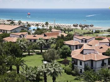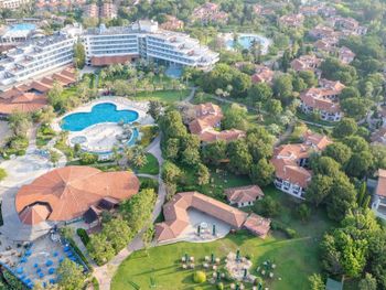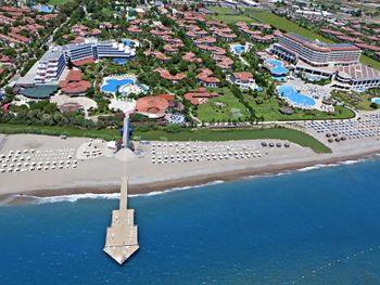 Отель прекрасный! Огромная территория, очень много зелени, все чисто и красиво. Мы жили в двухкомнатном домике и оказались весьма довольны. Хорошие комнаты, удобные кровати, регулярная уборка, замена полотенец, возможность видеть из окна гуляющих павлинов, куриц, растущие фрукты, слышать птиц - привнесли свой колорит. Бассейнов около 7-8, включающих аквапарк и лягушатники. Удобно разделены на всей территории отеля, что не создает толпу у каждого. В целом чистые, но на дне песок чувствовался постоянно. Выход к морю прямой, пляж большой, облагороженный, с детской площадкой. За 2 недели море ни разу не было спокойным, поэтому плавали почти всегда в бассейнах. Питания много. Опять же в разных местах, и в разное время. Еда нормальная, без изысков, стандартная Турция) Бары с любым алкоголем работают целый день. Вечерами ежедневные детская дискотека и танцевальные шоу. Большой детский клуб, дети с 4 лет могут быть без сопровождения взрослых. Аниматоры хорошие, говорящие на разных языках. Практически весь персонал отеля говорит на русском языке, что очень удобно. Гости разных национальностей, и все хорошо относятся друг к другу) От аэропорта Анталья добирались на такси, дорога заняла немного больше часа. Также на территории есть салон красоты, сувенирные лавки, магазины и тд. Есть прекрасная конюшня с лошадьми, козой и цыплятами. Можно покататься за деньги, а также покормить с руки, погладить и просто душевно провести время (это бесплатно) :)